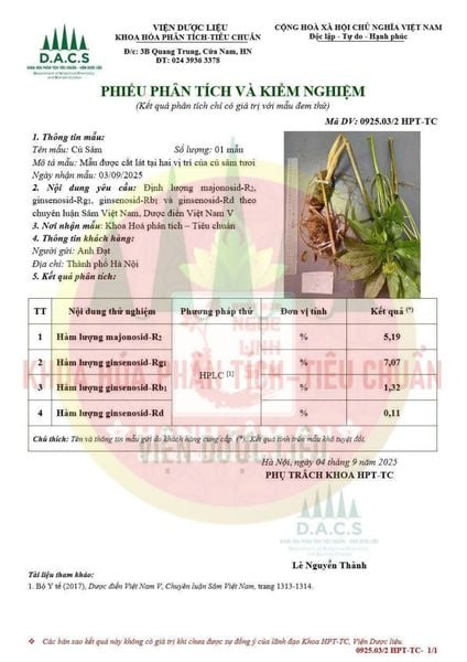 2️⃣ Kiểm định ADN & hàm lượng Saponin.